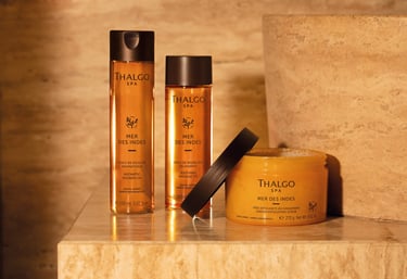 Un gommage riche en poudre de gingembre, un massage délassant et nourrissant à l'huile de sésame, enrichis principalement d'une Algue Rouge Indienne provenant des eaux calmes, des récifs et des lagons peu profonds des îles de l'Océan Indien.